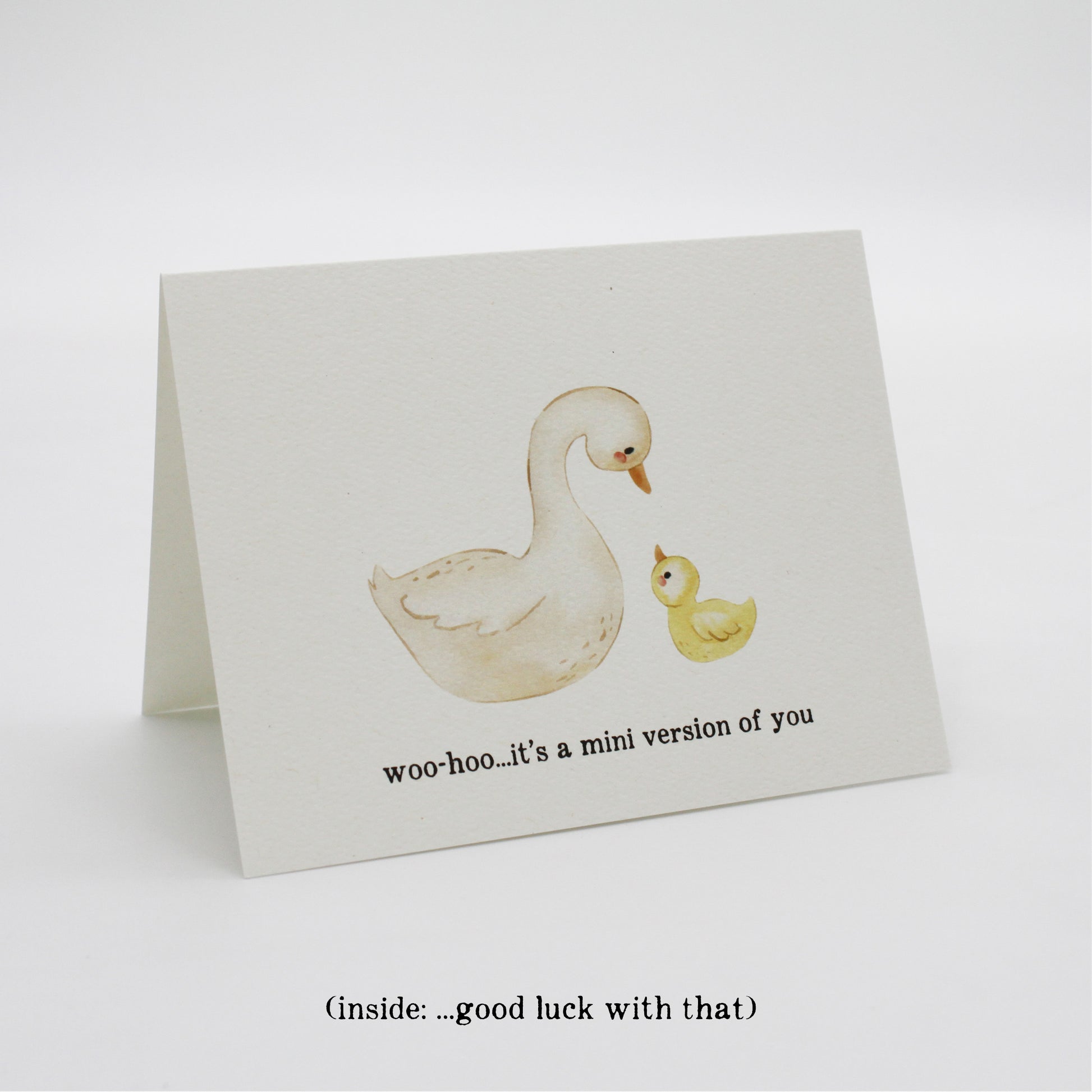 Our signature watercolor cards are printed on thick, textured paper with a matte finish for a timelessly rich touch and feel. Designed in-house with our classic brand of dry humor for life's most memorable moments.
