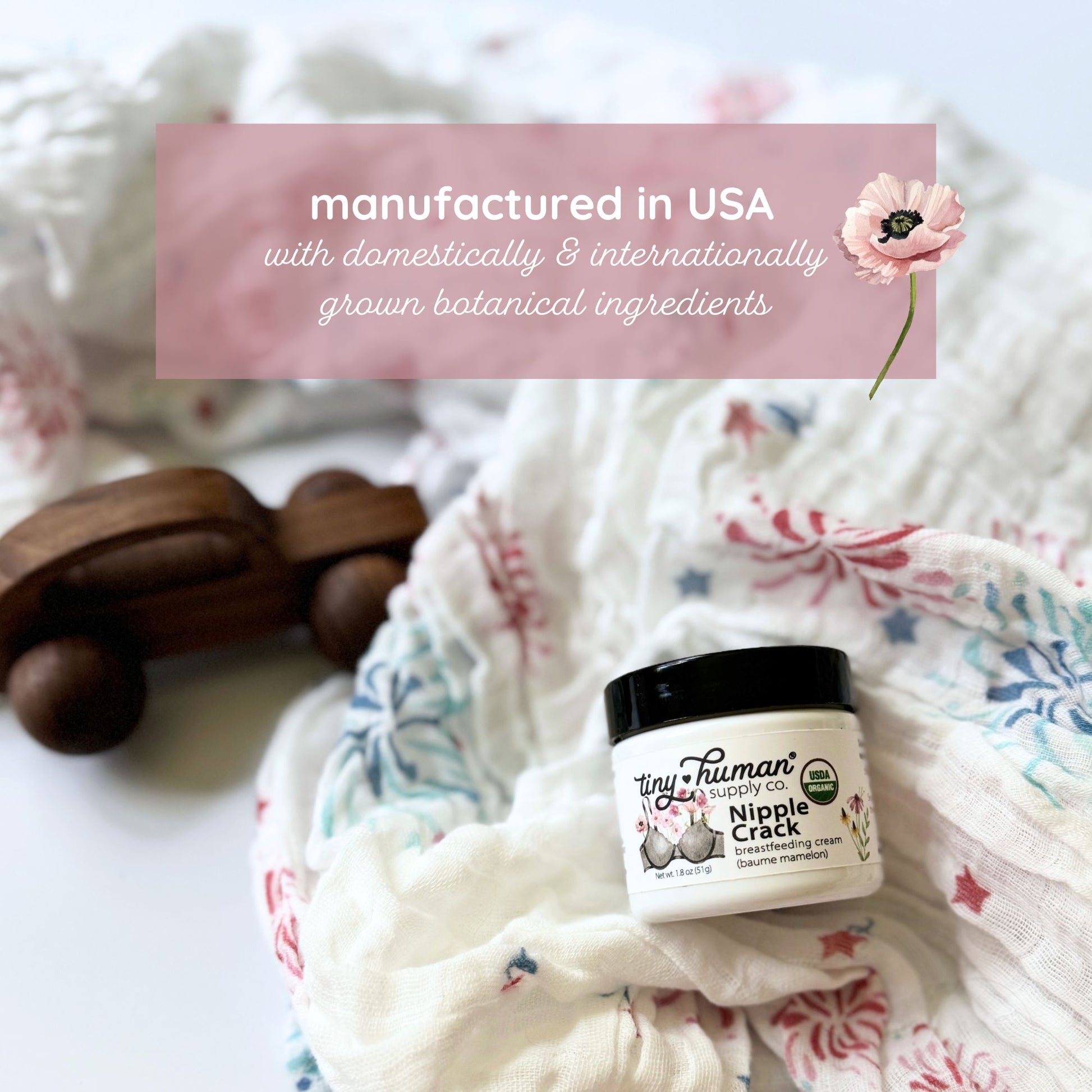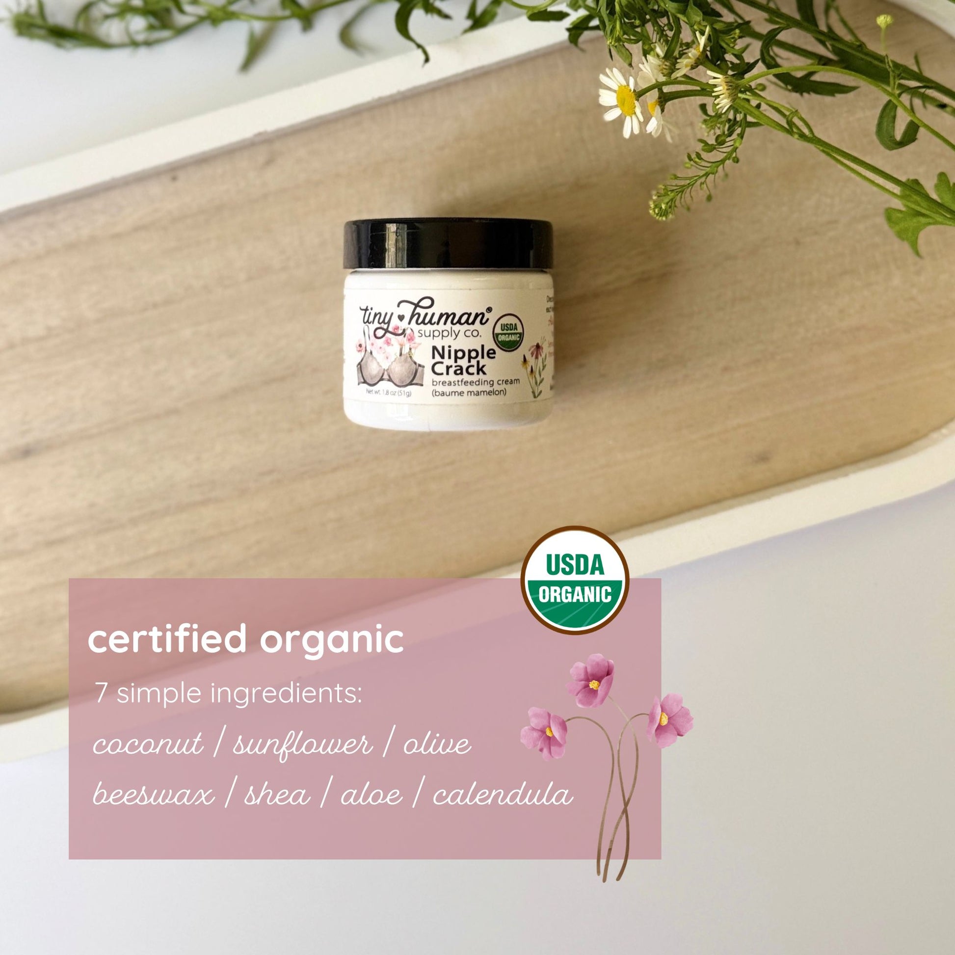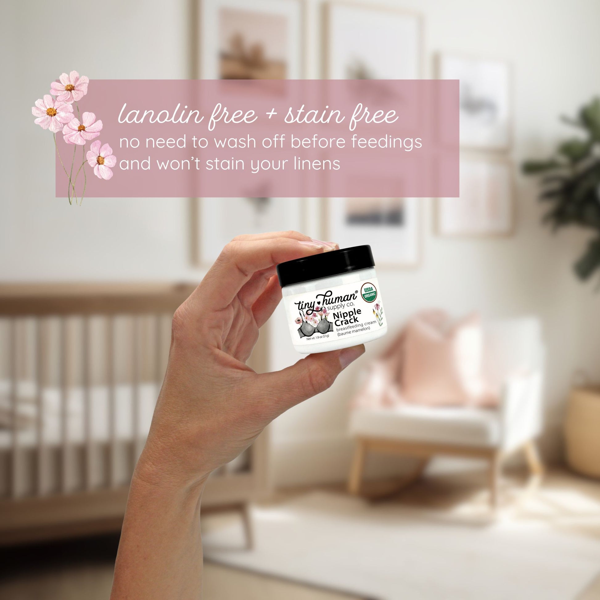 Made with organic, plant-based ingredients...so you don't have to wash it off before feedings. Hallelujah.